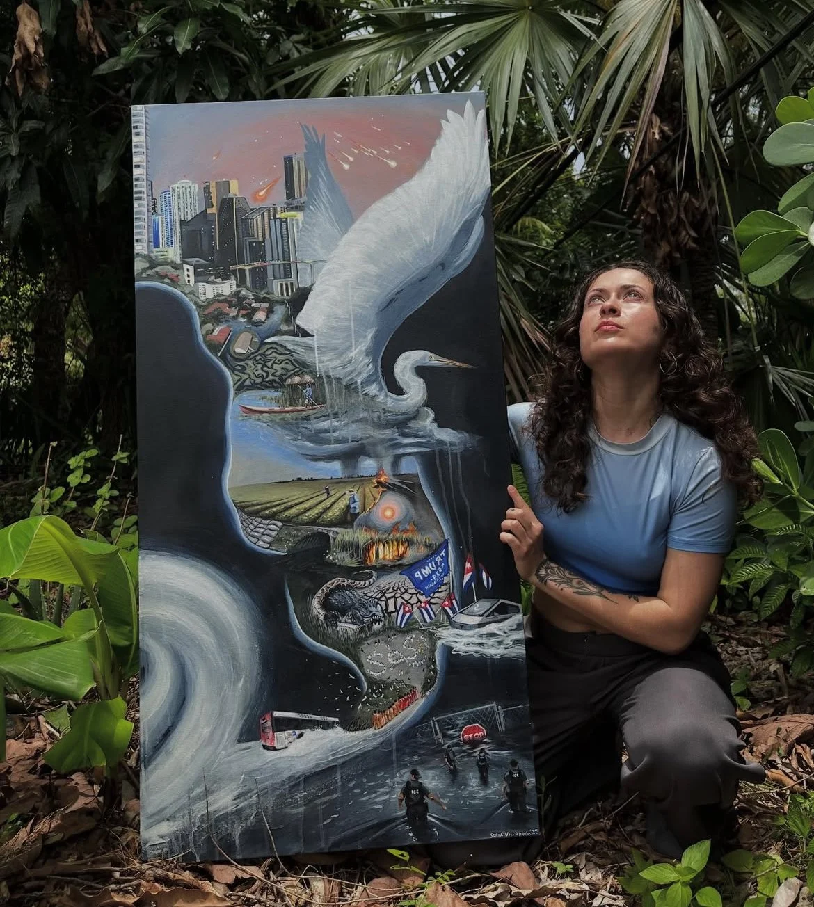 As my practice evolves, I feel increasingly drawn to the urgent issues affecting both our local and global environment. I see my work as a way to connect personal experience with collective awareness. As the granddaughter of Cuban immigrants, I feel a strong connection to the Caribbean. I view South Florida as a natural extension of it culturally, and in some ways ecologically. This perspective shapes my work. I see our region’s diversity as a defining strength. Miami would not be the vibrant, colorful city it is without its many communities. I believe these contributions are worth celebrating and protecting, especially at a time when both immigrant identities and our ecosystems are under threat. I work primarily with acrylic paint and ballpoint pen. Although recently I’ve been incorporating sculpture using natural and found materials. These elements, gathered from my surroundings, root my work in place and reflect the stories embedded in our landscapes. My goal is to foster connection and awareness of these stories.